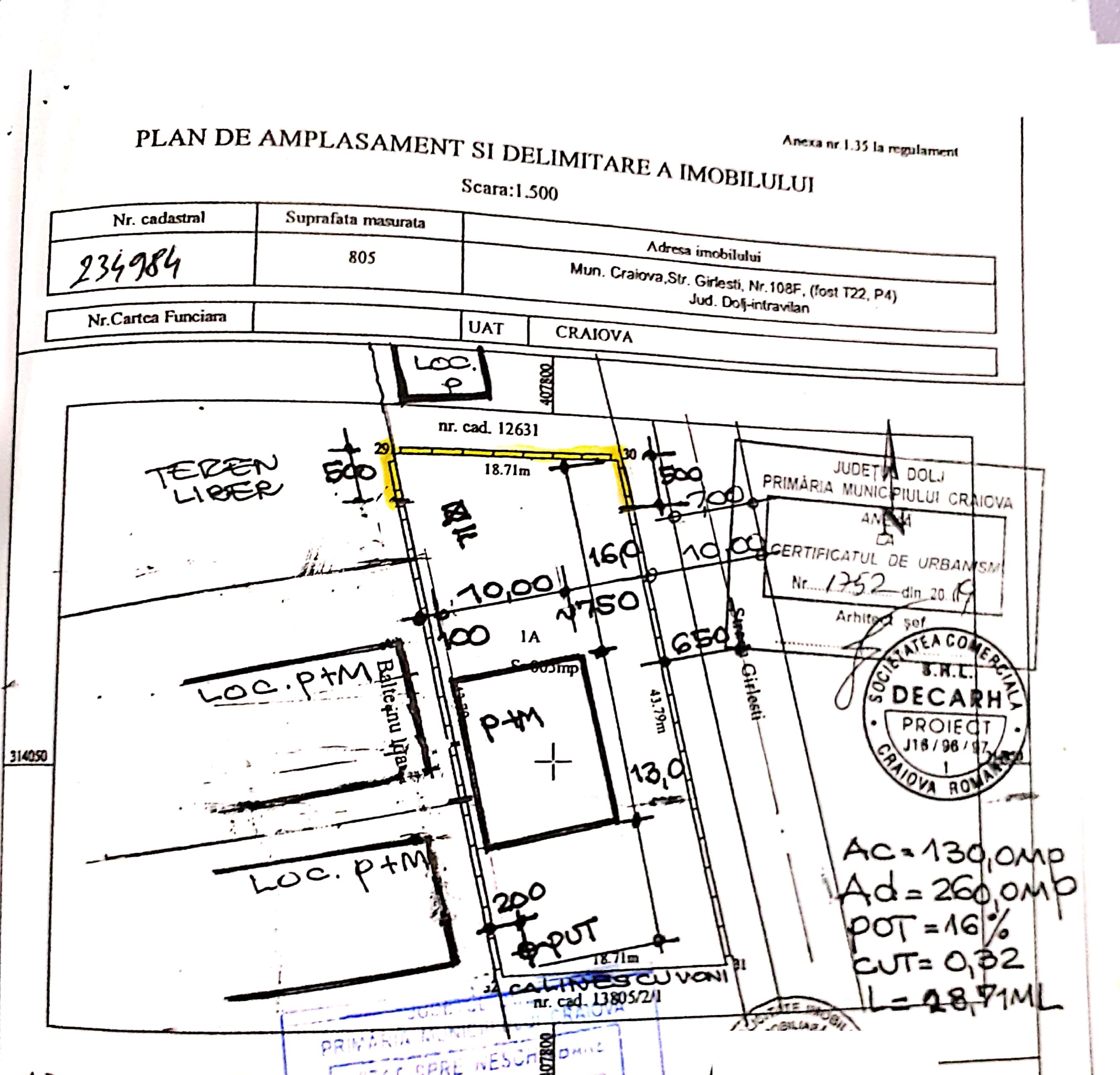 -pe imobilul - teren si construcţii - situat în judeţul Dolj , Municipiul Craiova , satul , sectorul , cod poştal - , Strada Girlesti , nr.108F , bl. , sc. , et. , ap. .