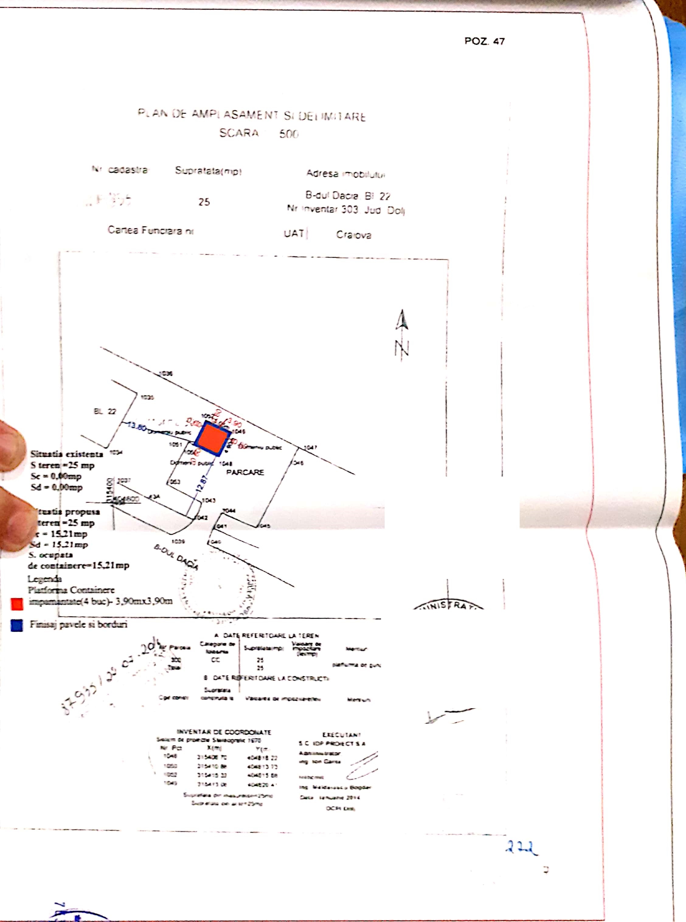 AMPLASARE CONTAINERE ÎNGROPATE PENTRU COLECTARE DEŞEURI MENAJERE - 438 PLATFORME GOSPODĂREŞTI CU 759 CONTAINERE ÎN MUNICIPIUL CRAIOVA - ZONA BLOCURI, ÎN CADRUL PROIECTULUI SISTEM DE MANAGEMENT INTEGRAT AL DEŞEURILOR ÎN JUDEŢUL DOLJ - PLATFORMA NR.47