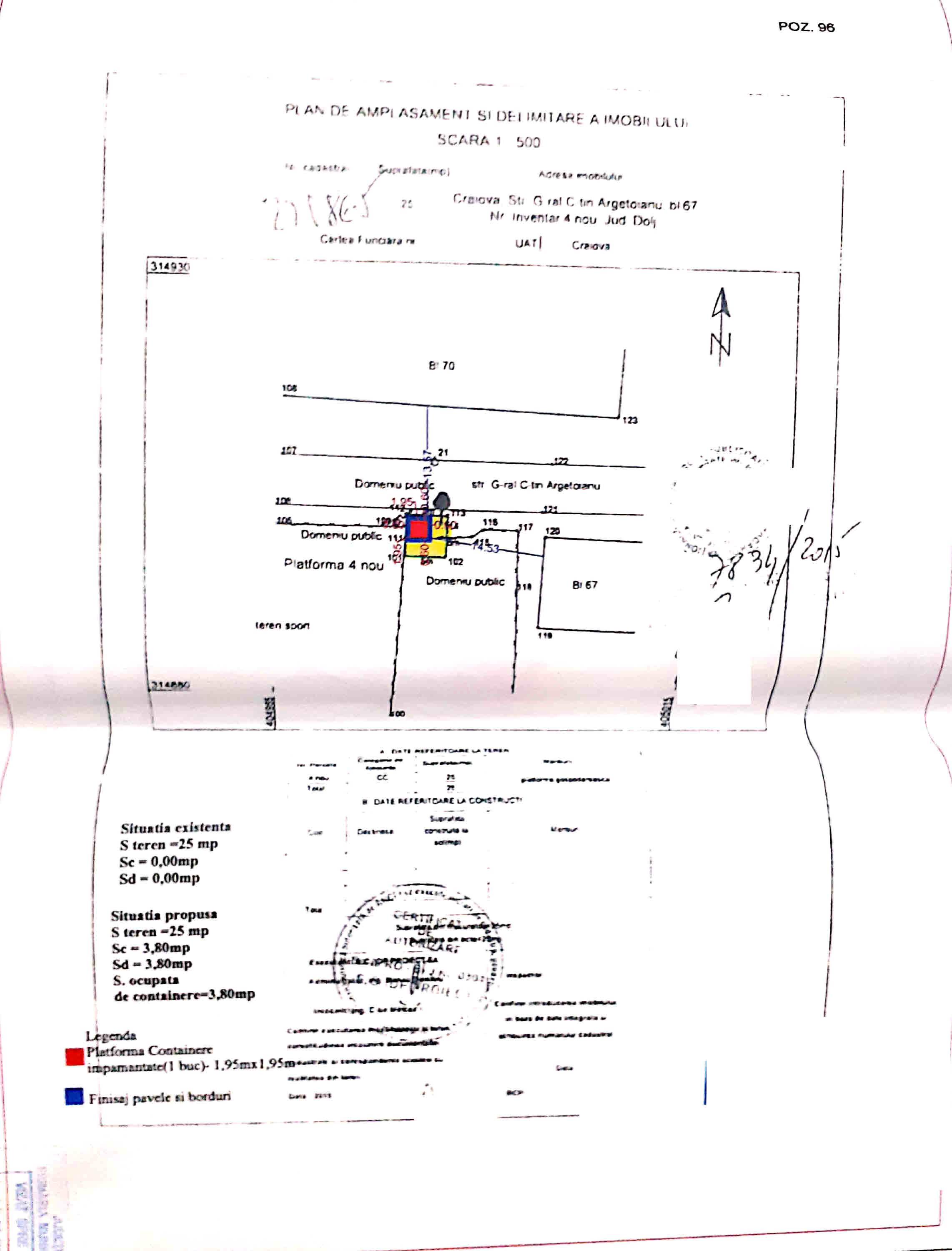 AMPLASARE CONTAINERE ÎNGROPATE PENTRU COLECTARE DEŞEURI MENAJERE - 438 PLAT- FORME GOSPODĂREŞTI CU 759 CONTAINERE ÎN MUNICIPIUL CRAIOVA - ZONA BLOCURI, ÎN CADRUL PROIECTULUI SISTEM DE MANAGEMENT INTEGRAT AL DEŞEURILOR ÎN JUDEŢUL DOLJ - PLATFORMA NR.96